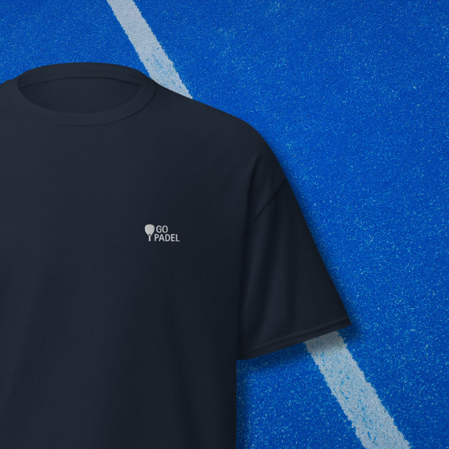 Short bleu marine GO PADEL logo blanc, coupe sport unisexe confortable, look assorti t-shirt et casquette, style padel complet